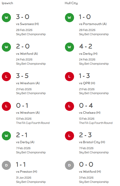 Hull tager turen til Suffolk i ganske god form. Kun 3 nederlag i de seneste 15 kampe – som har givet 10 sejre og 2 uafgjorte. The Tigers er Championhips bedste udehold – 30 point er hentet i 16 kampe på fremmed græs og de seneste 5 kampe på udebane er alle vundet. Faktisk skal vi helt tilbage til 22.november for at finde Hulls seneste udebanenederlag og det var med 3-2 på Loftus Road mod Queens Park Rangers.
